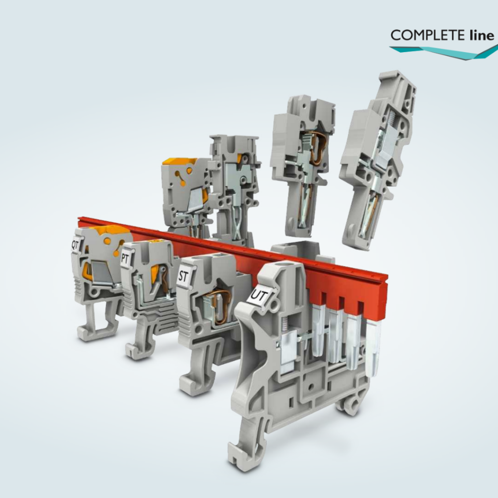 Siendo la primera línea de productos de la marca desde sus inicios, cuenta con una amplia oferta de bornes, con apriete por tornillo, por resorte, por push-in (tecnologia mas reciente), así como bornes portafusibles, bornes seccionables y bornes especiales para equipos de medición.