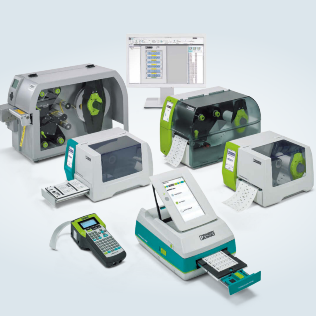 Para el personal de mantenimiento, instalación, ingeniería, proyectos lograr un correcto y eficiente cumplimiento de sus funciones asociadas a una instalación industrial se requieren que todos los equipos, cables, bornes estén debidamente identificados. Por eso ofrecemos las soluciones de Phoenix Contact a nuestros clientes, inclusive una impresora portátil para imprimir y solventar aquellas cosas que surgieron en plena puesta en marcha.