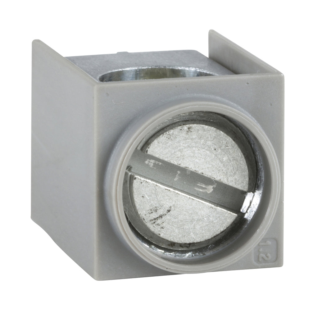 Estos accesorios son terminales de cable para dispositivos EasyPact EZC 100. Estas zapatas de cable pueden recibir un cable de 10 mm² a 50 mm². Los conectores están atornillados directamente en los terminales de alimentación del dispositivo. La corriente nominal va de 60A a 100A. Se venden por 3 partes.